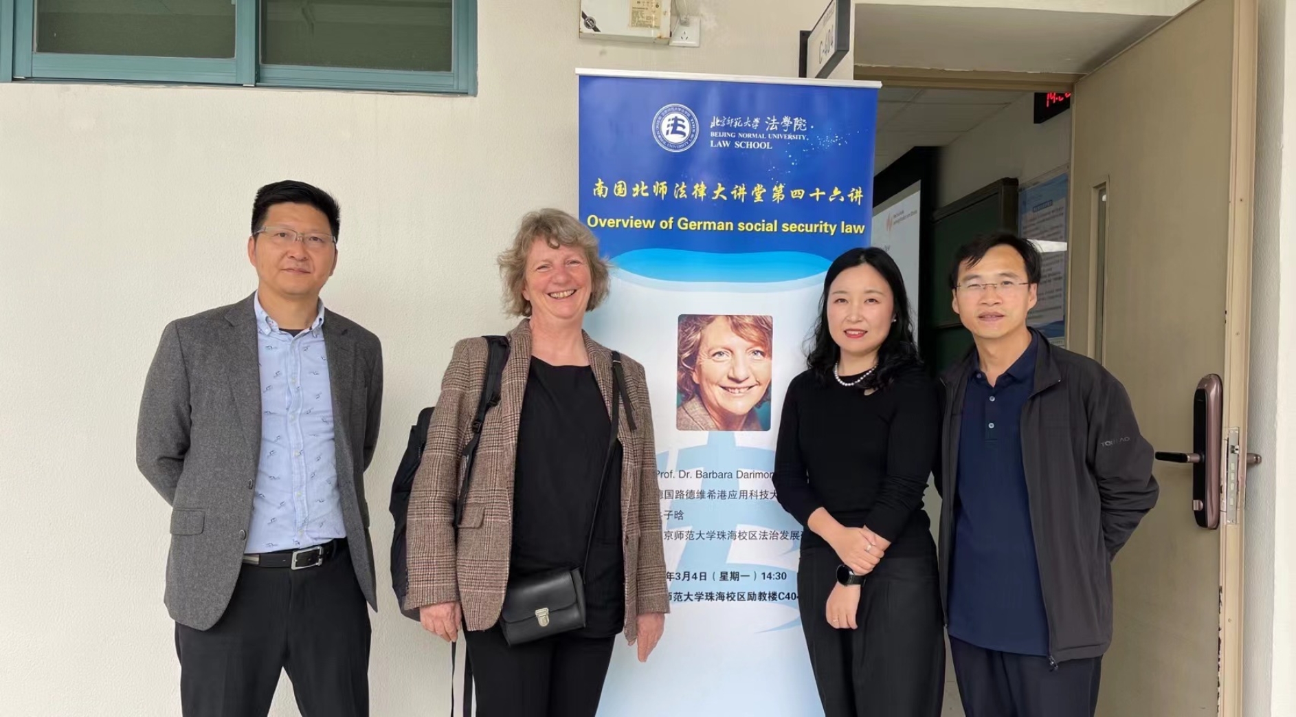 3月4日,南国北师法律大讲堂第四十六讲“Overview of German social security law”在 成人玩具 珠海校区励教楼C404顺利举行。本次讲座由德国路德维希港应用科技大学教授Barbara Darimont主讲, 成人玩具 法治发展研究中心牛子晗老师主持,成人玩具 副院长、珠海校区法治发展研究中心主任袁治杰教授,珠海华发集团叶再兴博士与谈, 成人玩具 珠海校区硕博同学到场聆听学习。