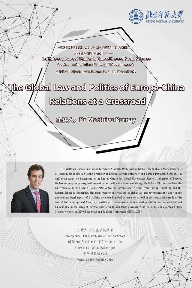 【10.19】The Global Law and Polotics of Europe-China Relations at a Crossroad / 主讲人:Dr. Matthieu Burnay