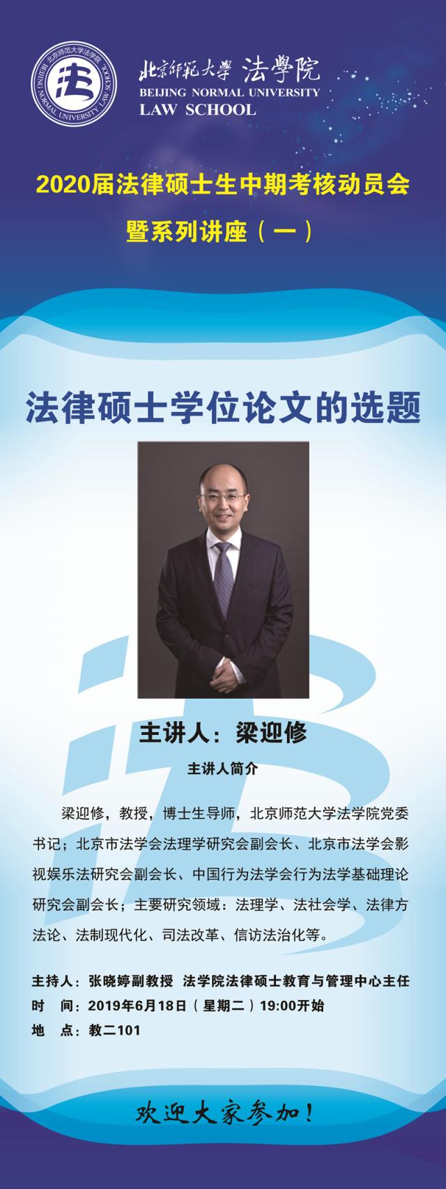 【06.18】2020届法律硕士生中期考核动员会暨系列讲座(一)法律硕士学位论文的选题/主讲人:梁迎修