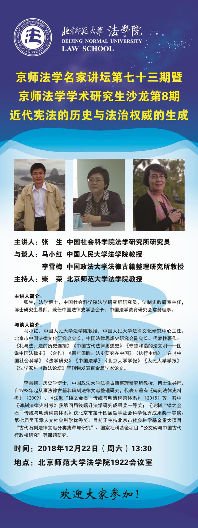 【12.22】京师法学名家讲坛第七十三期暨京师法学学术研究生沙龙第8期预告/主讲人:张生