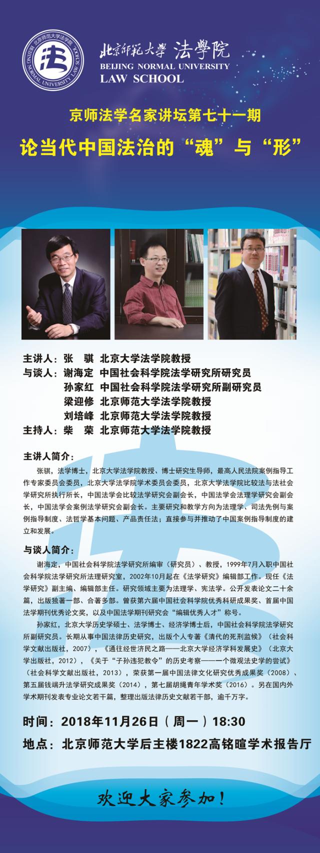 【11.26】京师法学名家讲堂一七十一期---论当代中国法治的“魂”与“形”/主讲人:张琪
