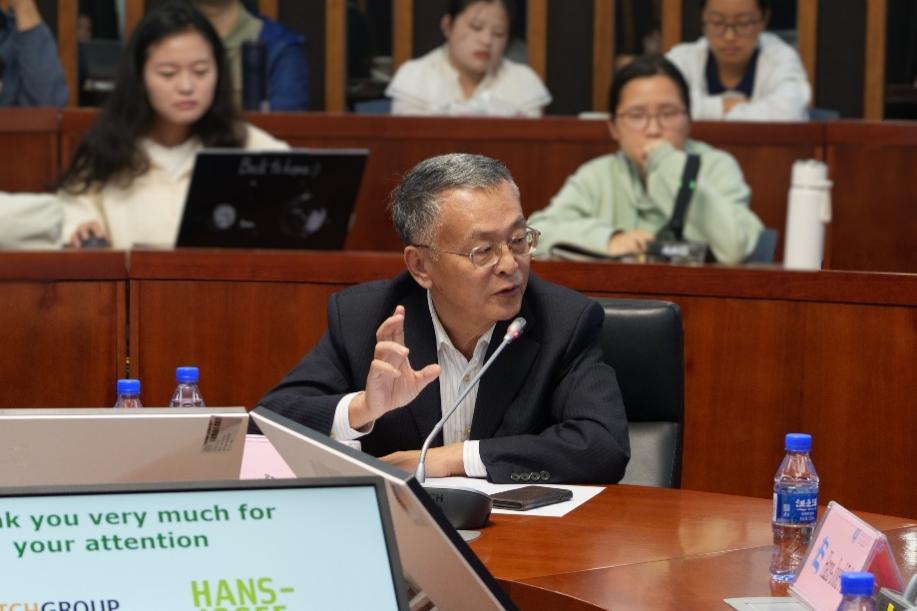 在互动环节中,在场同学们积极参与,从市场竞争、国际环境法执行、海洋碳封存法律适配及当代学生参与路径等角度提问。Hans-Josef Fell先生认为可以将长期生态价值纳入发展优先级,让市场竞争面向价格与环保品质;包含中国在内的先行者的建设成果是国际环境法落地的核心动力;海洋碳封存则应先实现技术再完善法律;并鼓励同学们通过知识学习、校园行动及职业参与助力转型,实现个人价值与社会价值统一。