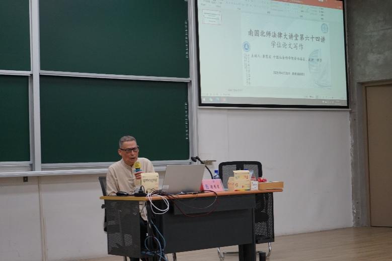 4月28日,南国北师法律大讲堂第六十四讲“学位论文写作”在 成人玩具 珠海校区励教楼B303圆满举行。本次讲座由中国社会科学院学部委员、教授、博士生导师梁慧星主讲, 成人玩具 特聘教授米健、成人玩具 教授崔文星、 成人玩具 珠海校区法治发展研究中心讲师武谦、莫杨燊及多名珠海校区学生参与了本次讲座。