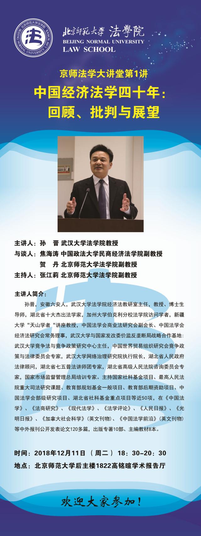 【12.11】京师法学大讲堂第1讲--中国经济法学四十年:回顾、批判与展望/主讲人:孙晋