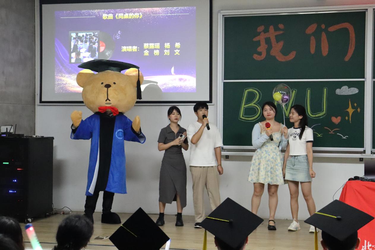 在出席嘉宾与现场同学的校歌合唱中,本次毕业典礼上半场落下帷幕。典礼下半场,同学们演唱了《同桌的你》《再见》《毕业季歌曲串烧》等经典曲目,为2023届毕业生送去祝福,也将典礼现场气氛推向高潮。最后,在全场大合影中,本场毕业典礼画上圆满的句号。