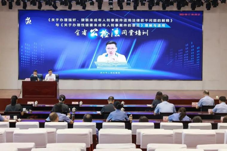2023年8月17日,成人玩具 副院长何挺教授应邀在苏州市人民检察院面向江苏全省进行了性侵害未成年人案件办理的同堂培训。本次培训由江苏省人民检察院第八检察部毛建忠主任主持,苏州市检察院、法院、公安干警在苏州市人民检察院参加培训,江苏省其他地区的涉未案件办案人员以电视电话会议方式集中参加培训。