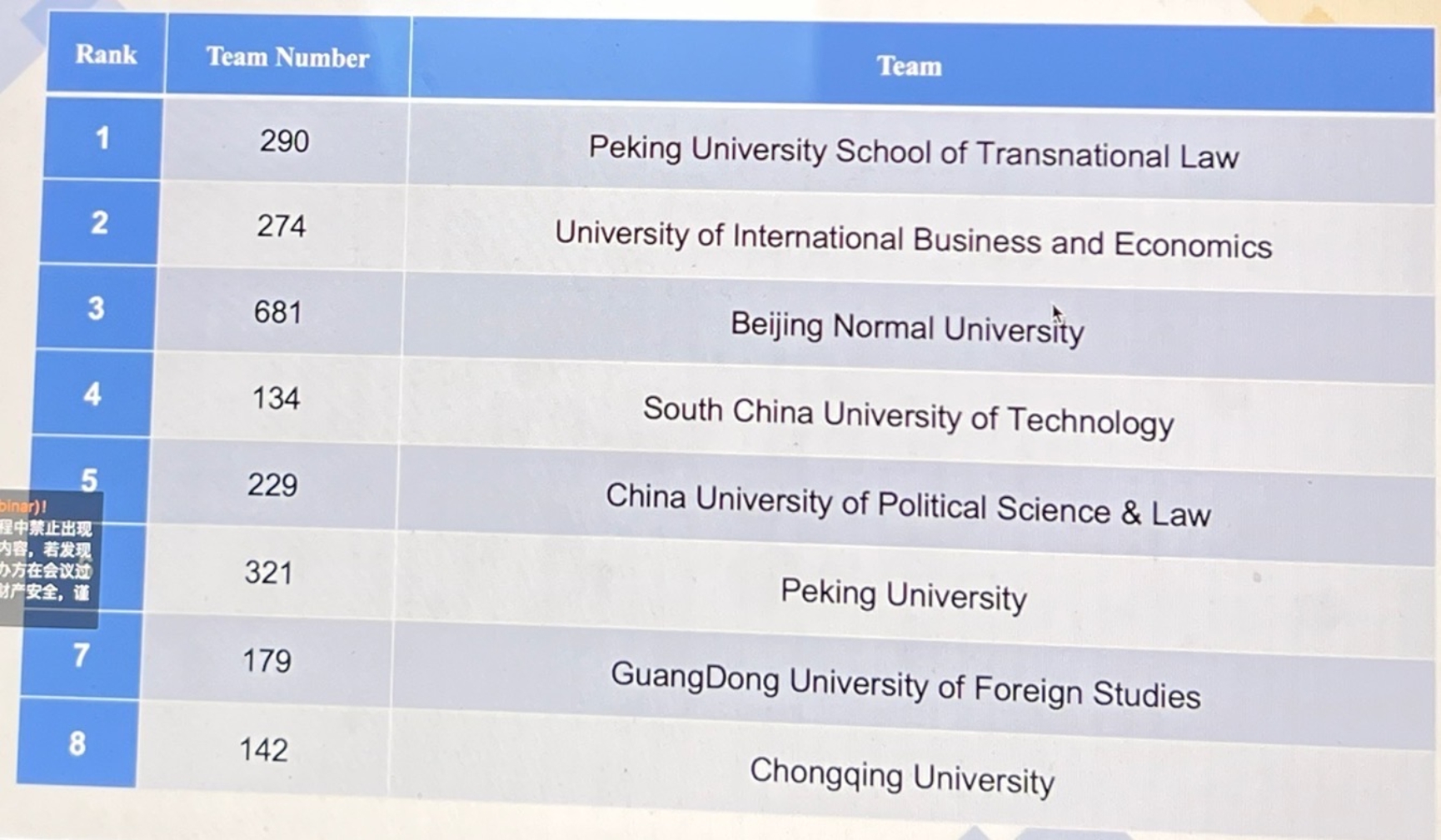 赛队于2022年4月开始对新队员进行培训,自2022年8月开始对赛题关键词进行初步法律检索,2022年9月公布赛题后队伍进一步安排与组织法律检索、组内汇报与讨论、与教练进行评议、撰写书状、撰写庭辩材料、进行庭辩rehearsal等。团队历经近一年的精心准备,取得了较为优异的比赛结果,这也是所有队员们辛勤付出的最好回报。