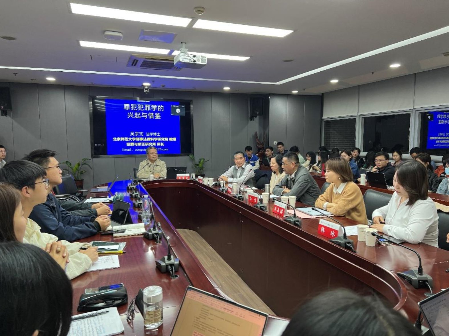 在讲座中,吴宗宪教授介绍了罪犯犯罪学的兴起概况、研究工作、实践活动、政策建议以及借鉴思考。