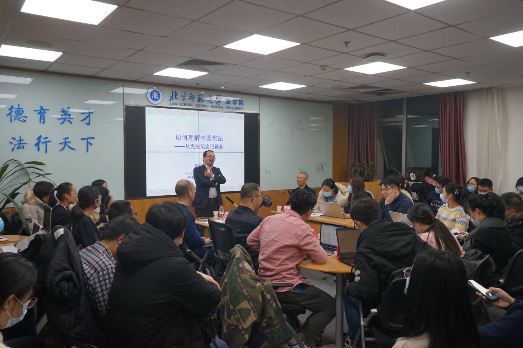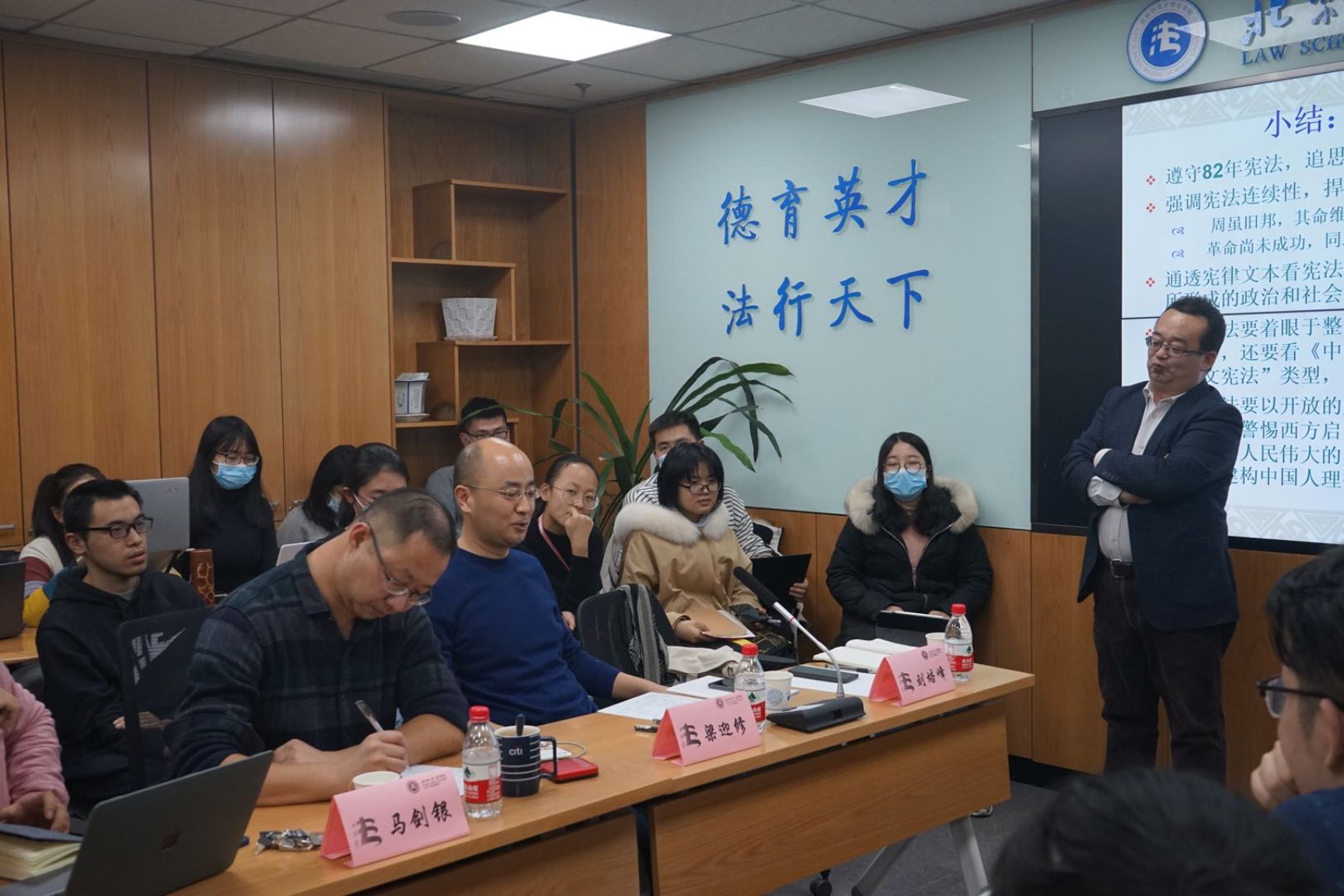 2020年12月24日晚上,京师法学名家讲坛第九十期——中国宪法的革命性和连续性主题讲座在 成人玩具 后主楼1922室成功举办。本次讲座的主讲人是北京大学 成人玩具 强世功教授,与谈人是成人玩具 梁迎修教授和马剑银副教授。 成人玩具 的本硕博的学生约有60人参与。本次讲座的主持人是成人玩具 刘培峰教授。