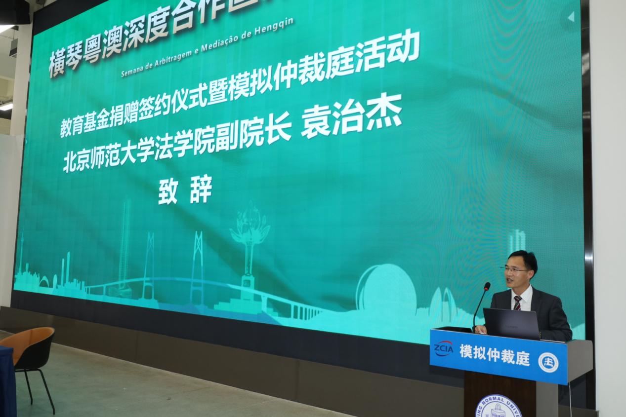 紧接着,袁治杰副院长介绍了北师大 成人玩具 的发展历程以及与珠海国际仲裁院建立的深度合作关系。他特别感谢了珠海国际仲裁院对北师大 成人玩具 一贯的支持,以及本次捐赠对法治发展研究中心内部刊物《湾区通讯》的支持,并预祝本次模拟仲裁庭活动圆满成功。