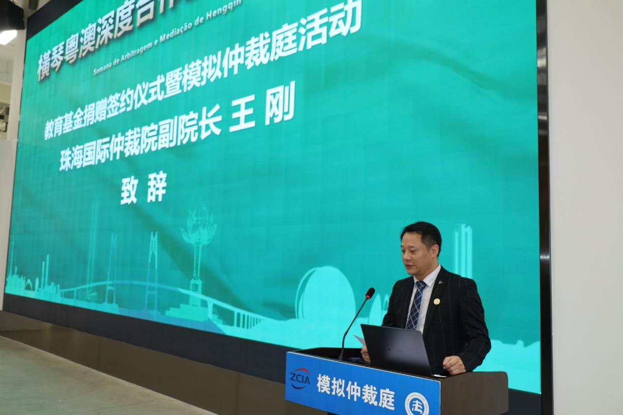 首先,王刚副院长代表珠海国际仲裁院对参加本次活动的各位嘉宾表示热烈欢迎和衷心感谢。他指出,公正的仲裁纠纷解决途径能够为国内仲裁制度快速发展和良好法治化现代化的营商环境的构建提供法治保障,对促进粤澳合作区的深度融合具有重要意义。最后,王院长表示希望本次活动能够增加同学们对仲裁行业的了解,让同学们有所收获。