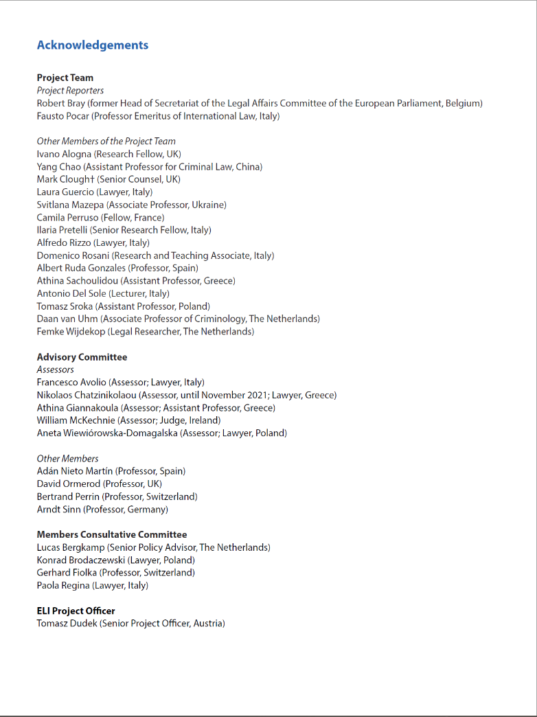 近日,成人玩具 杨超博士参加“Ecocide”研究项目组提交的研究报告获得“欧盟法律研究所”批准,“Ecocide:欧盟立法指令及决议的模范文本”报告作为欧洲社会针对环境犯罪的最新研究成果,通过环境犯罪历史发展、犯罪构成、国际法定义、国别研究、政治因素及欧盟立法建议稿,分几部分阐述了“最为严重环境犯罪”的系统研究。