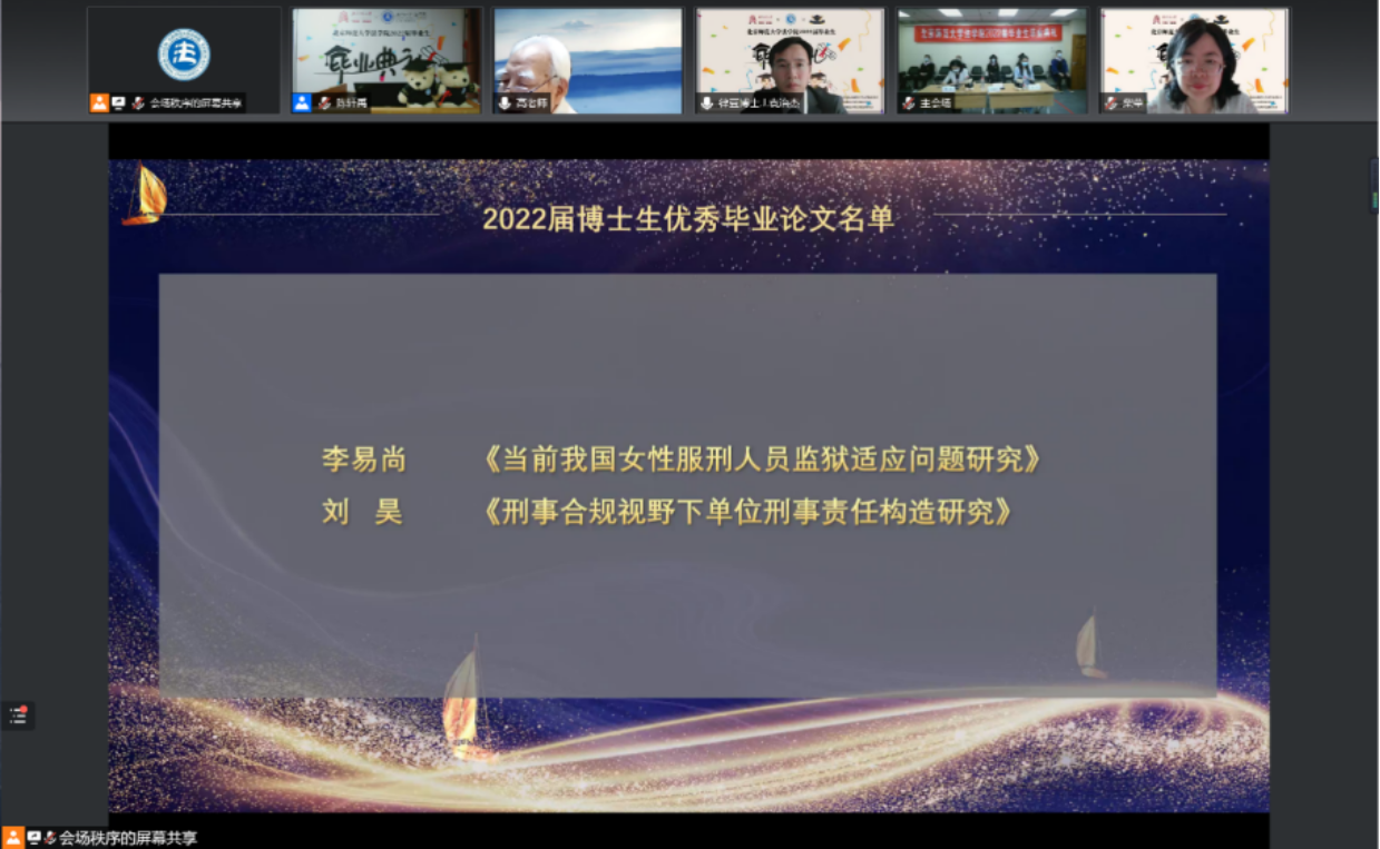 阴建峰教授宣读了2022届博士生优秀毕业论文获奖名单。