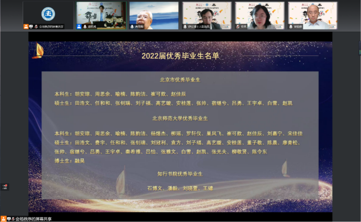 郭雅婷老师宣读了2022届优秀毕业生获奖名单,其中包括北京市优秀毕业生名单、 成人玩具 优秀毕业生名单和知行书院优秀毕业生名单。