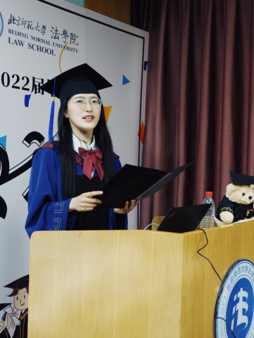 任和和同学回忆并总结了自己在师大的七年里不断尝试、不断学习的过程,对师大 成人玩具 的包容和支持、师大老师的帮助和指导、师大同学们的信任和理解表达了最诚挚的感激和祝愿。同时,她也鼓励同学们作为法律人应当保持对法律的信仰,为国家和社会努力做出贡献。