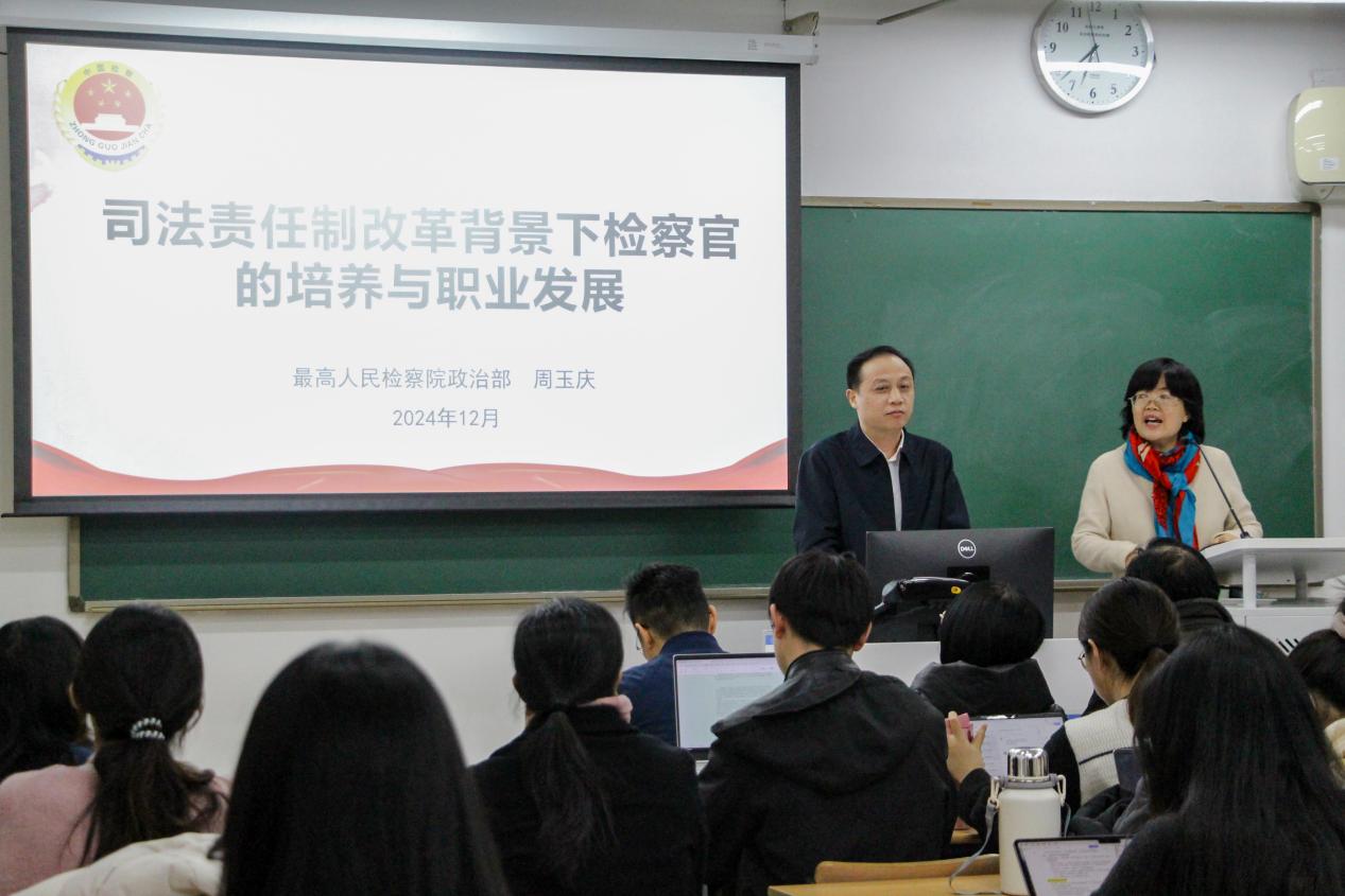 专题讲座上,周玉庆副主任结合全程参与检察机关司法责任制改革的亲身经历以及自己的成长经历,从司法责任制改革的三大背景、职业检察官培养的五条路径、检察官职业发展的六个方向、大学生适应职场的五个建议等四个方面,为 成人玩具 师生讲授了《司法责任制改革背景下检察官的培养与职业发展》。