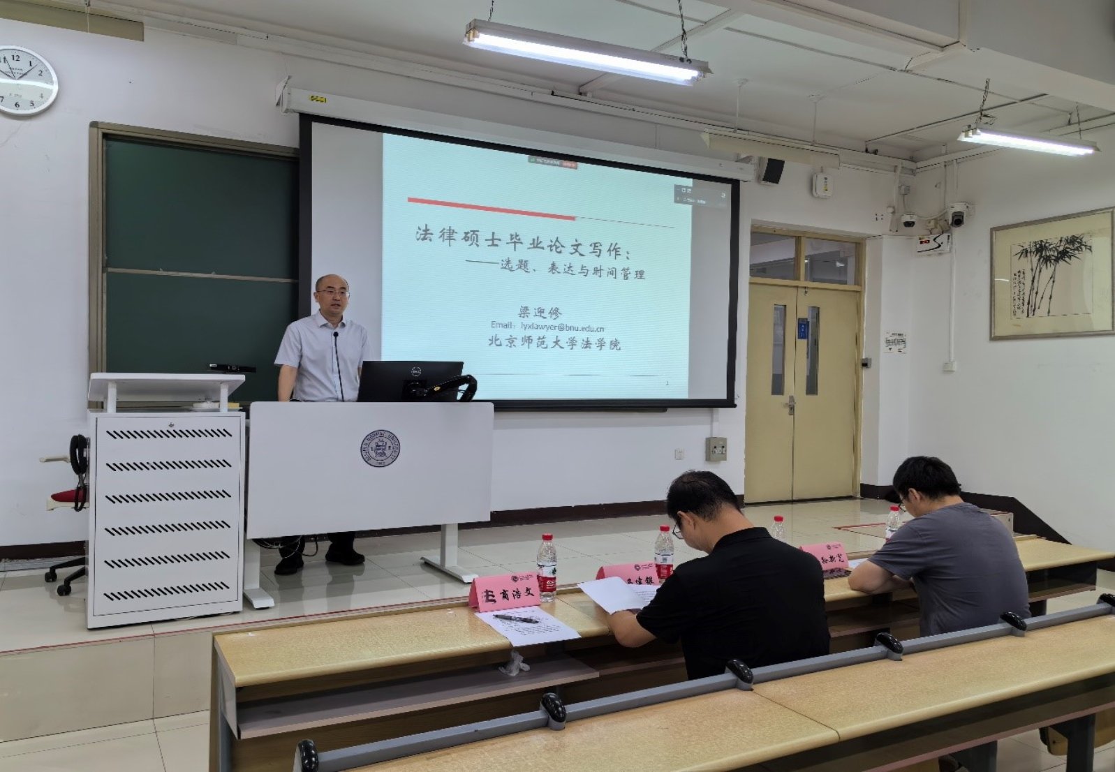 接下来,梁迎修教授做了以“法律硕士毕业论文写作——选题、表达与时间管理”为专题的讲座。讲座主要围绕论文选题、内容和时间管理三方面进行。对于选题,同学们要秉承“有意义、有创新、能驾驭”的原则,详细了解学术动态和发展方向,按照提出问题、先期调研、调整论题的步骤来选择题目。对于内容,在论文构成上,同学们要注意认真书写标题、导论、引注、附录和参考文献等;在行文上,同学们要注意标点、章节、排版等方面;在伦理方面,要注意切勿假引伪注和抄袭剽窃。在时间管理方面,梁老师建议同学们尽可能提前完成写作任务。