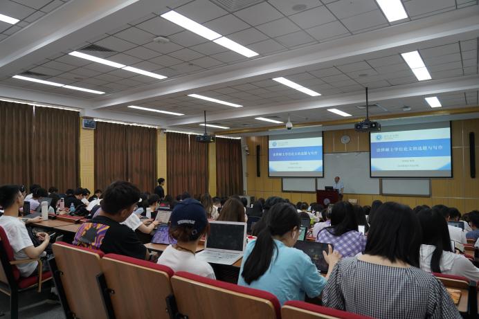 接下来,梁迎修教授做了以“法律硕士学位论文的选题与写作”为专题的讲座。讲座主要围绕论文选题、写作和学术规范三方面进行。对于选题,同学们要秉承“有意义、有创新、能驾驭”的原则,详细了解近两年的学术动态和发展方向,以小见大来选择题目。对于写作,同学们可结合自身论文选题,多查阅文献材料,做到问题往深处挖,提炼自己的独到见解和观点。对于学术规范,梁老师从论文格式、形式规范到规范学术行为方面向同学们进行了说明和讲解。
