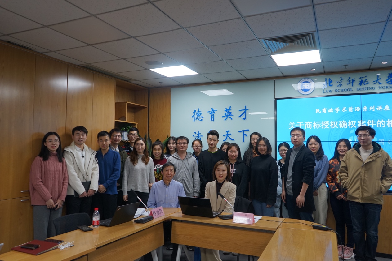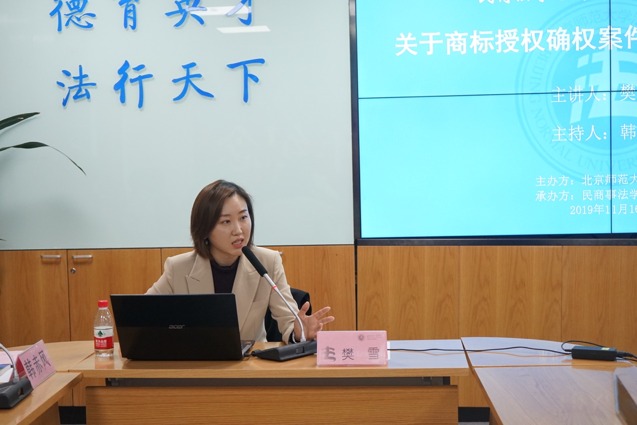 2019年11月16日下午15时30分, 成人玩具 民商法学术前沿系列讲座第二场——“关于商标授权确权案件的相关法律问题”在 成人玩具 后主楼1922会议室成功举办。本次讲座由北京市高级人民法院知识产权庭樊雪法官担任主讲人,成人玩具 民商事法学教研中心主任韩赤风教授担任主持人。 成人玩具 本硕博近三十位学生参加了本次讲座。