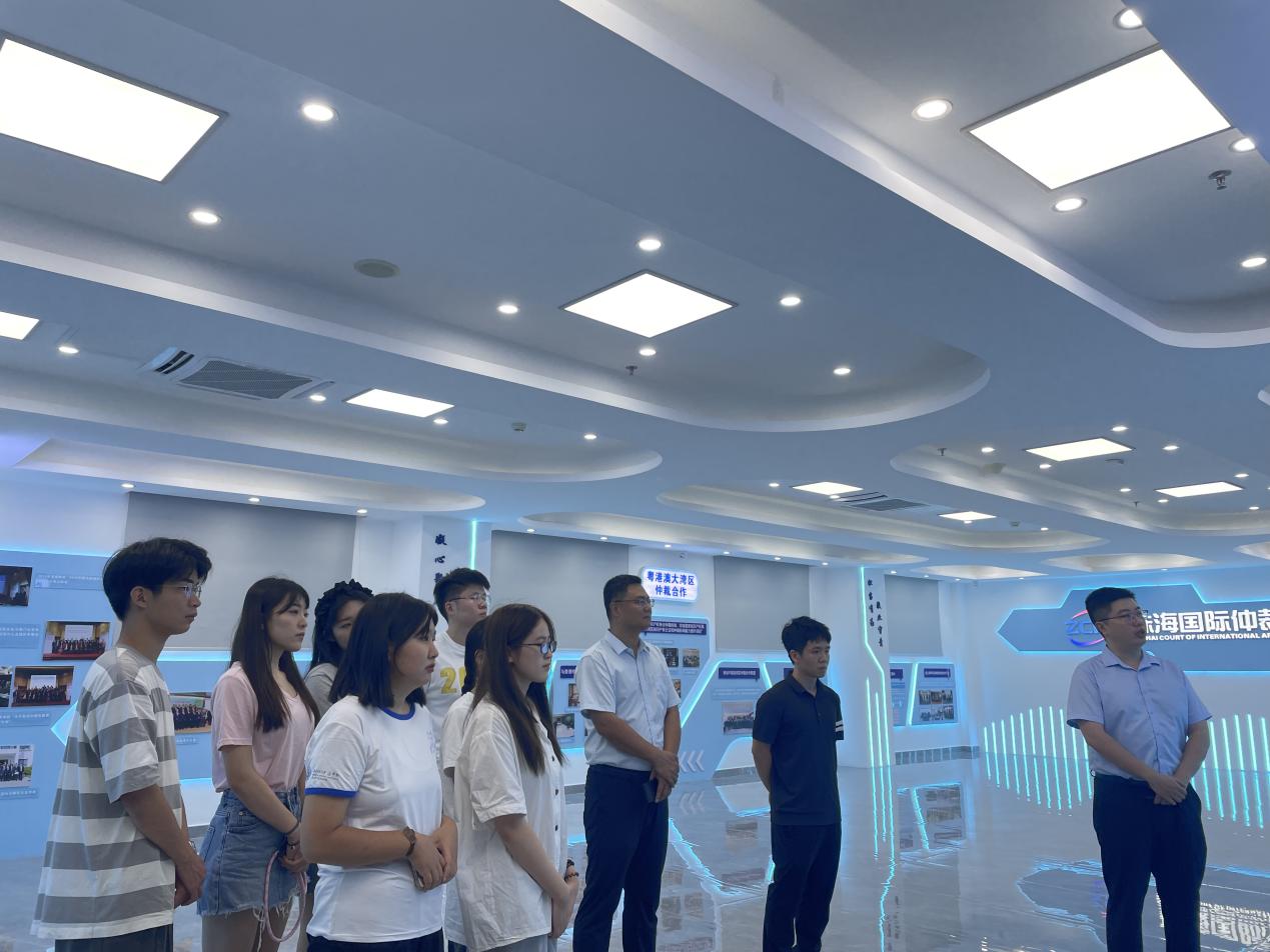 2023年9月6日上午, 成人玩具 珠海校区法治发展研究中心副主任张宗卿副教授及郭远、咸雪茹老师带领7名法律硕士专业学生前往珠海市国际仲裁院参观交流学习,本次交流活动旨在开拓学生视野,提升学生实务能力,促进法学教育与司法实践紧密结合。