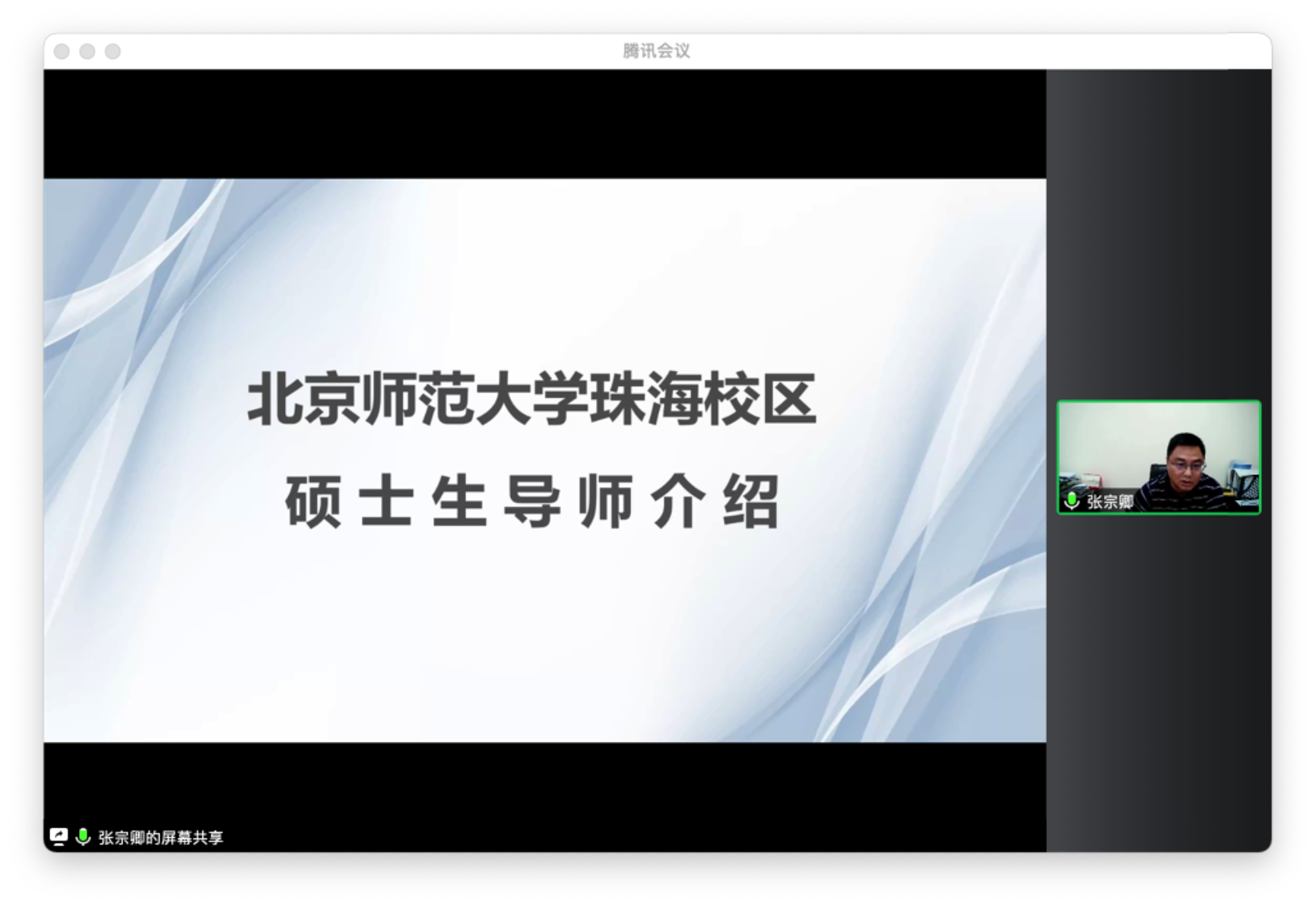 珠海校区张宗卿副教授为同学们介绍了珠海校区的优秀老师。张老师建议大家多读不同方面的优秀书籍,掌握并熟练运用学术研究方法,建议珠海的同学们利用大湾区的地理优势,根据个人兴趣和未来职业发展方向,多多发展自己的个人能力。