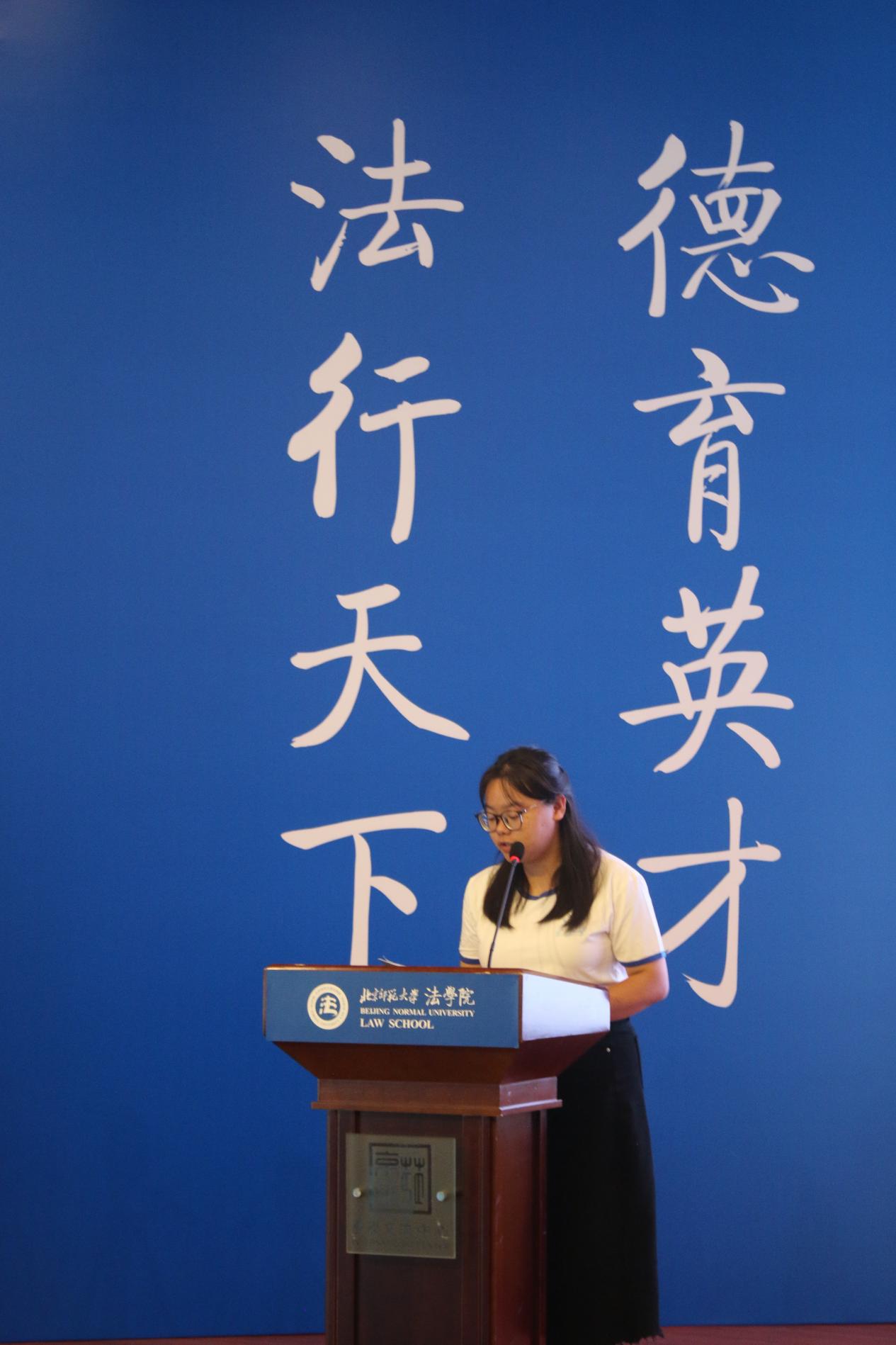 作为新生代表的罗一鸣同学向大家阐述了她对法学生使命与担当的思考。第一,大学之道,贵在求知,我们怀揣梦想而来,就应把握住研究生这一重要的人生积累阶段,扎实学识、精进业务。第二,时代向前,青春向上,我们有活力、有朝气,更应该去探索、去创造。第三,心之所向,路之所往,现在的我们,应当理解好时代责任的意义、处理好小我与大我的关系,以家国梦想引领青春航向,尽快明确个人发展目标,与祖国同心同行。