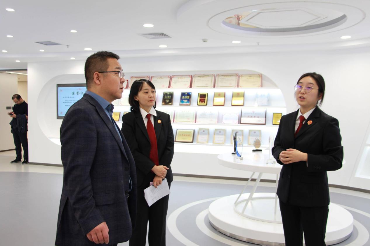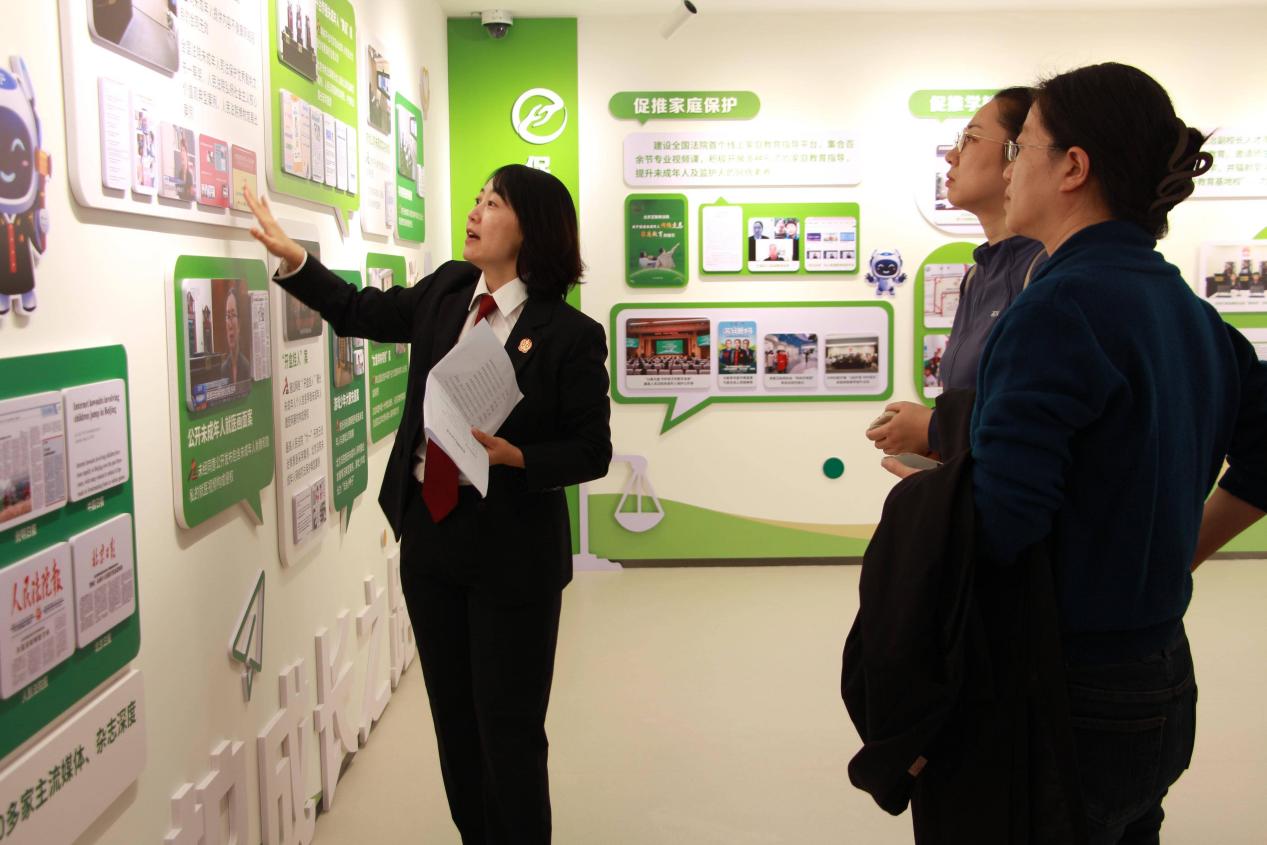 在“智慧司法”主题参观环节,师生通过三维可视化系统观摩“云庭审”现场,实地体验无纸化办案环境。法院干警现场演示“天平链存证平台”操作流程,讲解电子证据溯源验证技术。随后,工作人员引导师生进入党建空间,介绍北京市互联网法院的发展历史、党建成绩,感受科技赋能、党建力量。参观过程中,“首互未来”未成年人网络保护品牌建设成果引发关注,法院创新多方协同机制,通过强化组织机制保障、打造法治宣传阵地、建立特色审理机制等举措构建起未成年人互联网司法保护体系。