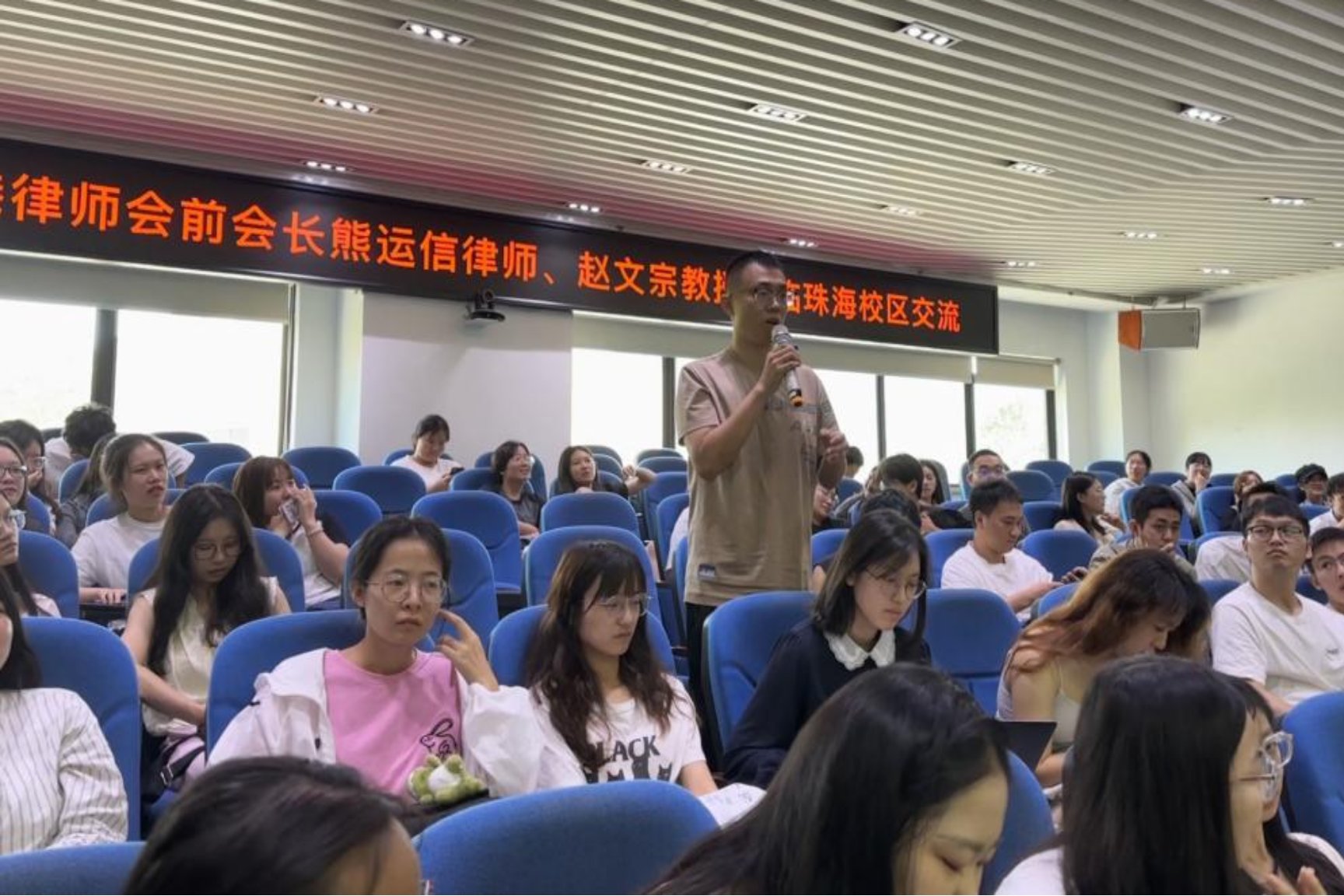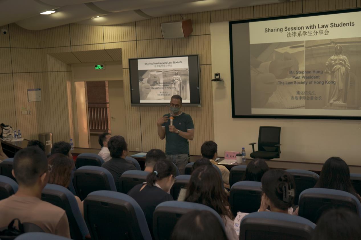 分享交流环节时,同学们关于香港就业渠道、如何赴港升学等问题对熊律师进行了提问,熊律师耐心地对同学们的提问做了详细解答。熊律师对有志于赴港发展的同学提出了宝贵的建议,他的经验和知识为同学们打开了一扇了解香港法律行业的窗户。同学们纷纷表示,通过熊律师和赵教授的分享,他们对香港的法律行业有了更深入的了解,也对未来的职业规划有了更清晰的方向。