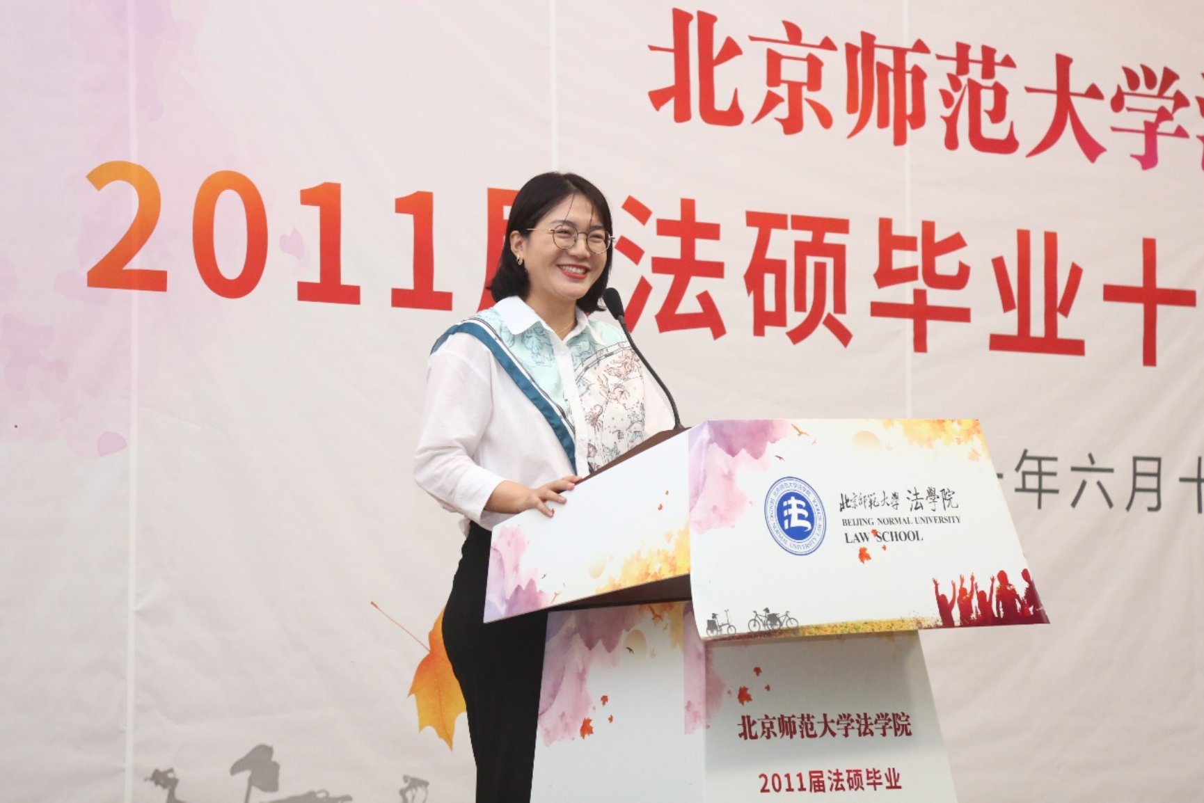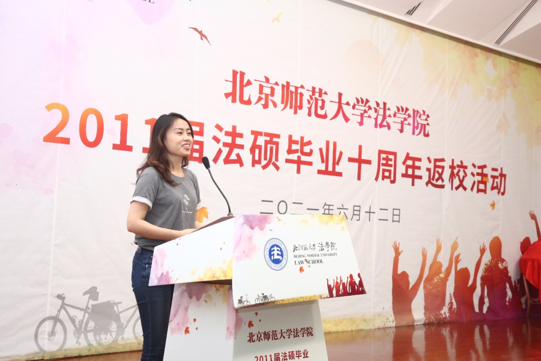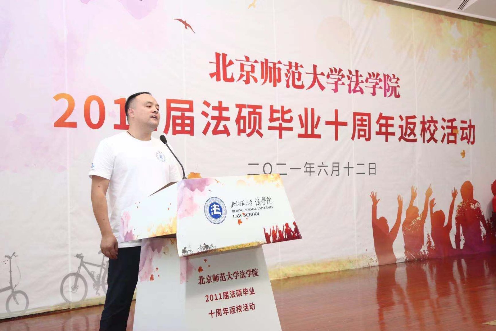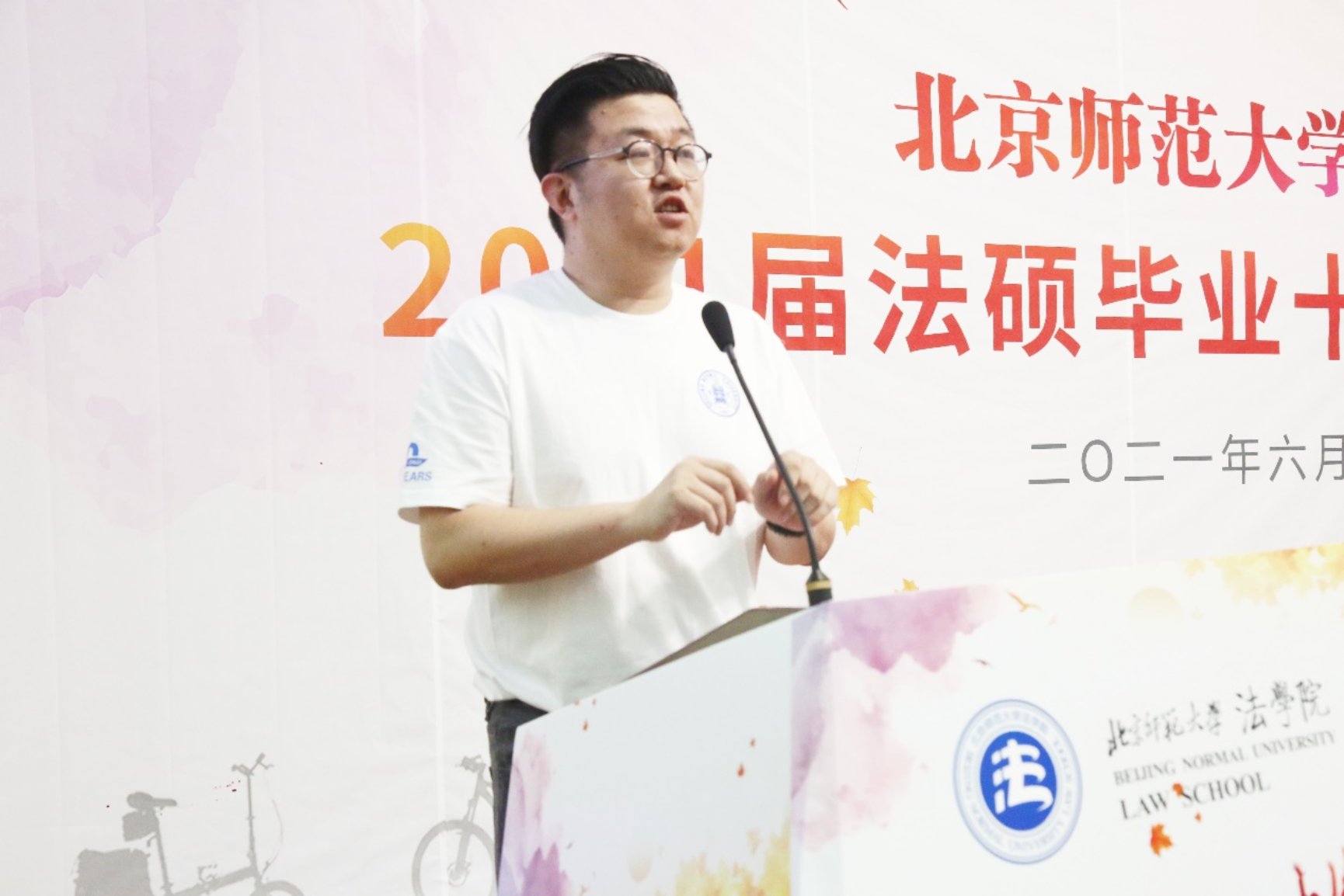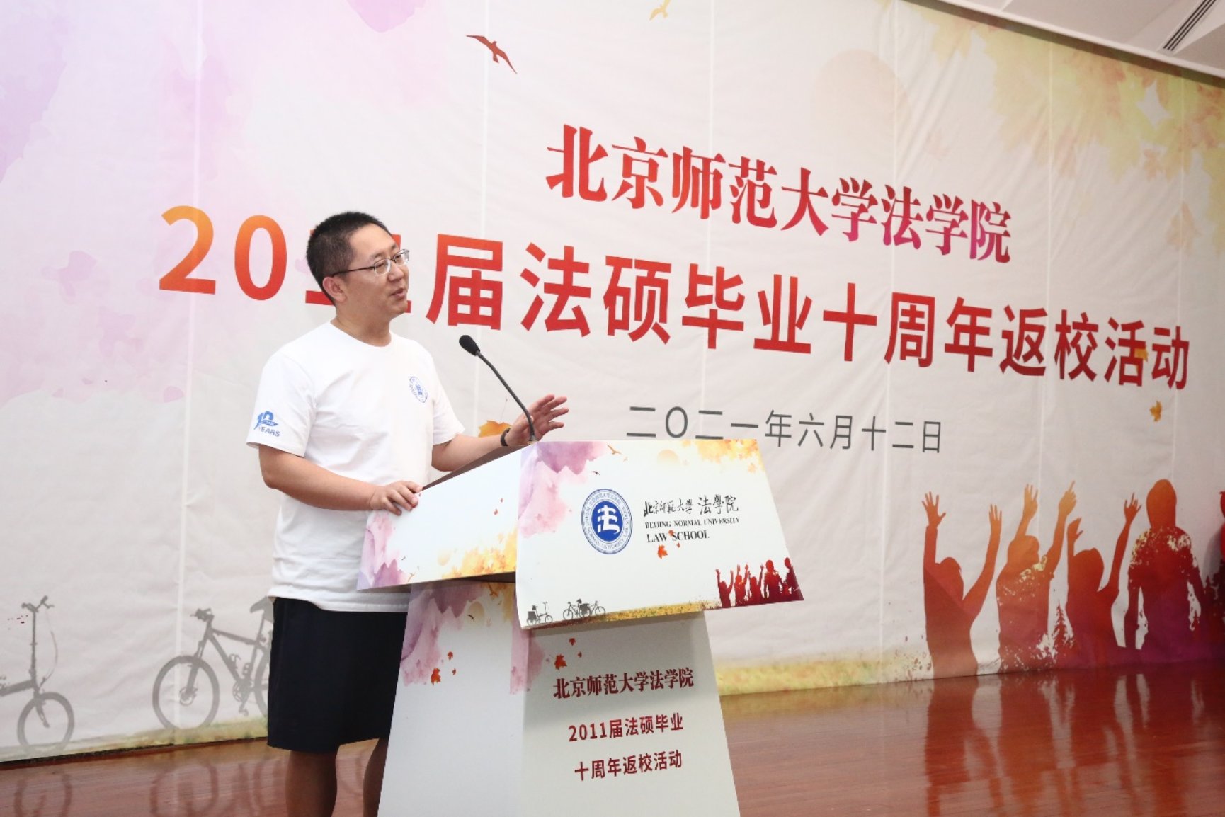 在校友代表发言环节,熊威学长回忆了十三年前作为 成人玩具 第一届法硕求学的时光,分享了大家相处的珍贵瞬间,表达和并肩奋斗的同学在北师的夏日里相约的幸福感。